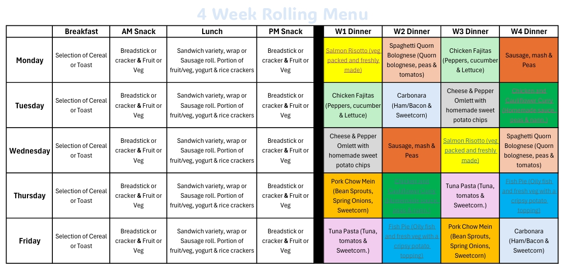 Dinner will be served between 16.00 and 16.30. We are a family run pre-school and will sit down as one big family with the children to eat dinner. As we would in our own household, all meals will be healthy and home cooked.